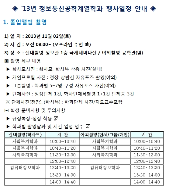 525. [¼öÁ¤][°øÁö][Çʵ¶]¢Â `13³â Á¤º¸Åë½Å°øÇÐ°è¿ Á¹¾÷¾Ù¹ü ÃÔ¿µ ¹× Á¹¾÷¿©Çà ¾È³» ¢Â