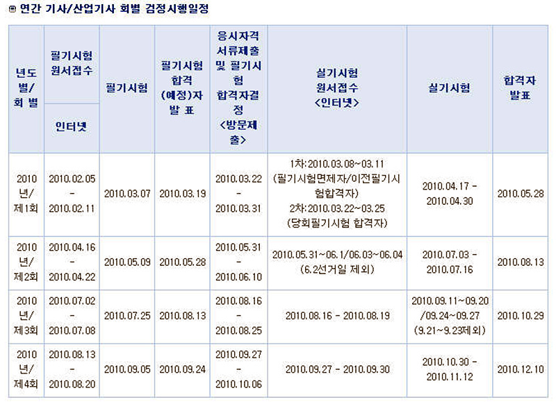 228. 2010³â Á¤º¸Ã³¸®»ê¾÷±â»ç ½ÃÇèÀÏÁ¤ °øÁö